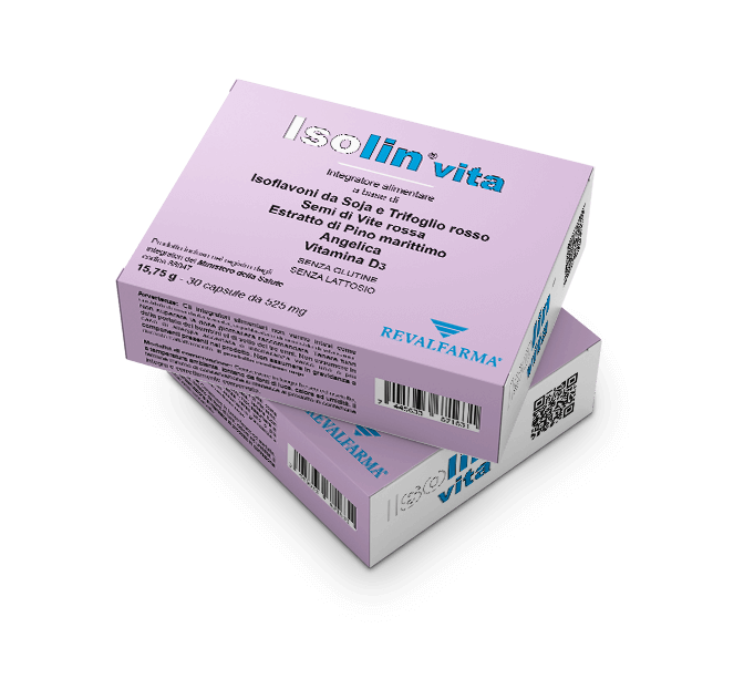 Isolin® vita è un integratore alimentare a base di estratti vegetali di Soja, Trifoglio rosso e Angelica utili nel contrasto dei disturbi della menopausa, Vitamina D 3 che contribuisce al mantenimento di ossa normali, Vite rossa e Pino marittimo, ricchi di PAC, che possiedono attività antiossidante. Inoltre la Vite rossa favorisce la funzionalità del microcircolo (pesantezza delle gambe).